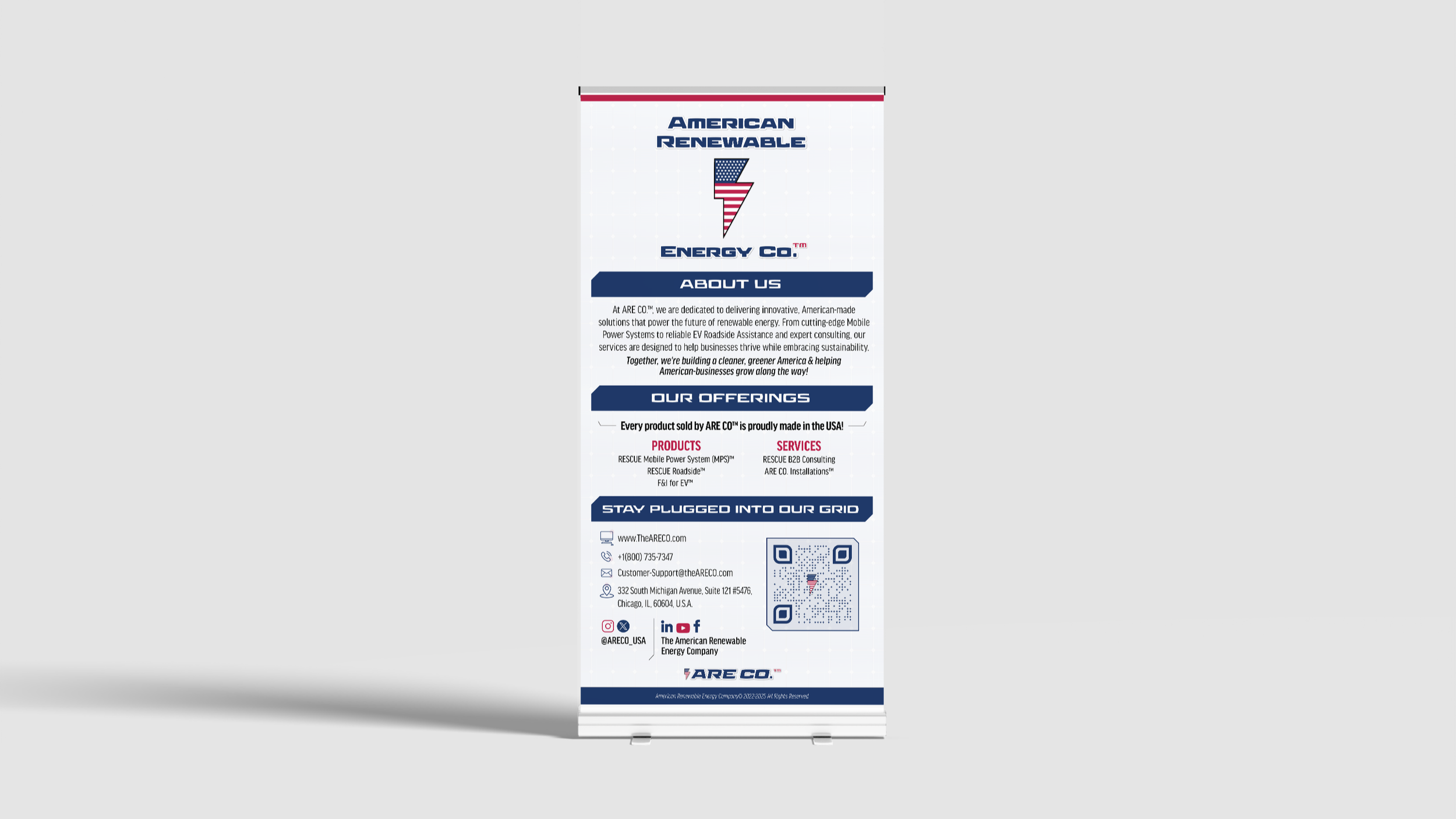 The American Renewable Energy Company, LLC. ™ (ARE CO.) was started in March of 2022 out of Chicago, IL, to expand consumer availability of EVSE (electric vehicle supply equipment) throughout America and to provide American businesses with 100% American made EVSE products and services.